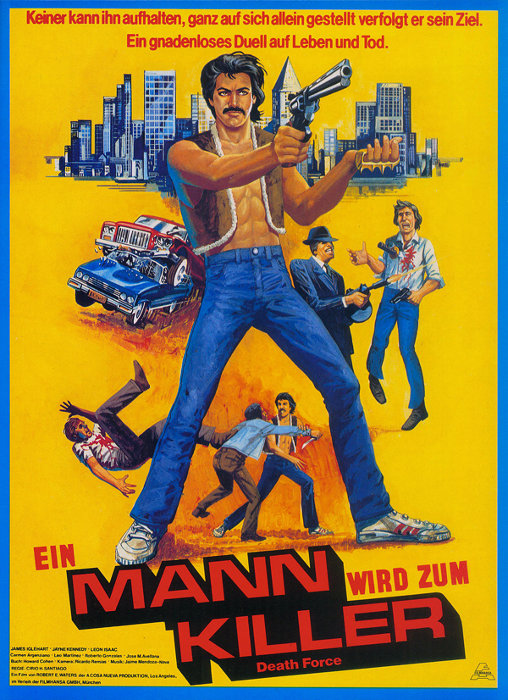 Dieses Filmplakat für "Ein Mann wird zum Killer" (Death Force) strahlt eine intensive Action-Atmosphäre aus, die typisch für das Genre der späten 70er und frühen 80er Jahre ist.