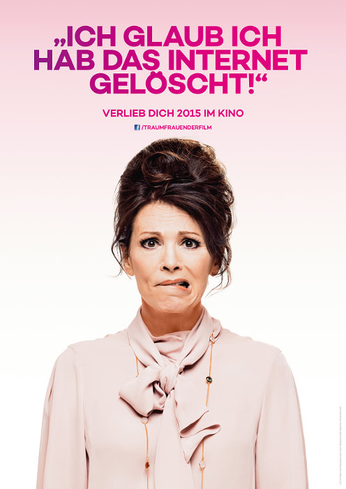 Der zentrale Text in leuchtendem Pink lautet: „ICH GLAUB ICH HAB DAS INTERNET GELÖSCHT!“ Dies ist ein humorvoller und provokanter Slogan, der auf eine komödiantische Handlung hindeutet, bei der die Protagonistin versehentlich etwas Wichtiges oder Katastrophales im Internet getan hat. Der Untertitel „VERLIEB DICH 2015 IM KINO“ gibt das Erscheinungsjahr des Films an und lädt das Publikum ein, sich in die Geschichte zu verlieben.