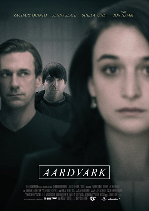 Der Titel "Aardvark" ist in einer schlichten, aber markanten Schriftart unter den Gesichtern dargestellt, eingerahmt von einem weißen Rechteck, das ihn hervorhebt. Die Gesamtkomposition erzeugt ein Gefühl von Geheimnis und psychologischer Tiefe, und lässt den Betrachter über die Beziehungen und Konflikte zwischen den Charakteren spekulieren. Es ist ein Plakat, das Neugier weckt und auf einen Film hindeutet, der sich mit komplexen menschlichen Emotionen und möglicherweise dunklen Geheimnissen auseinandersetzt.