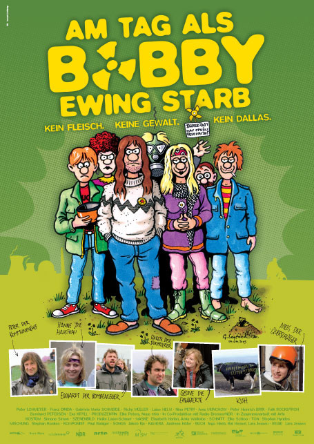 Dieses Filmplakat bewirbt den deutschen Film "Am Tag als Bobby Ewing starb" aus dem Jahr 2005. Der Titel spielt auf eine berühmte Episode der amerikanischen Fernsehserie "Dallas" an, in der die Figur Bobby Ewing nach einem vermeintlichen Tod auf mysteriöse Weise wiederbelebt wurde.