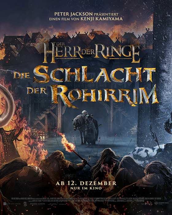 Das Plakat verspricht eine actiongeladene Geschichte, die sich auf die Rohirrim konzentriert, ein stolzes und kriegerisches Volk aus Mittelerde. Die Szenerie deutet auf eine entscheidende Schlacht hin, die das Schicksal von Rohan und möglicherweise ganz Mittelerde beeinflussen wird. Die Botschaft "Ab 12. Dezember nur im Kino" kündigt den baldigen Kinostart an und weckt Vorfreude bei den Fans.